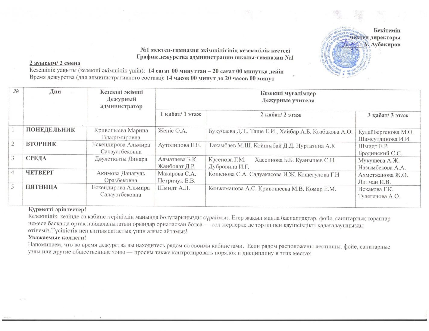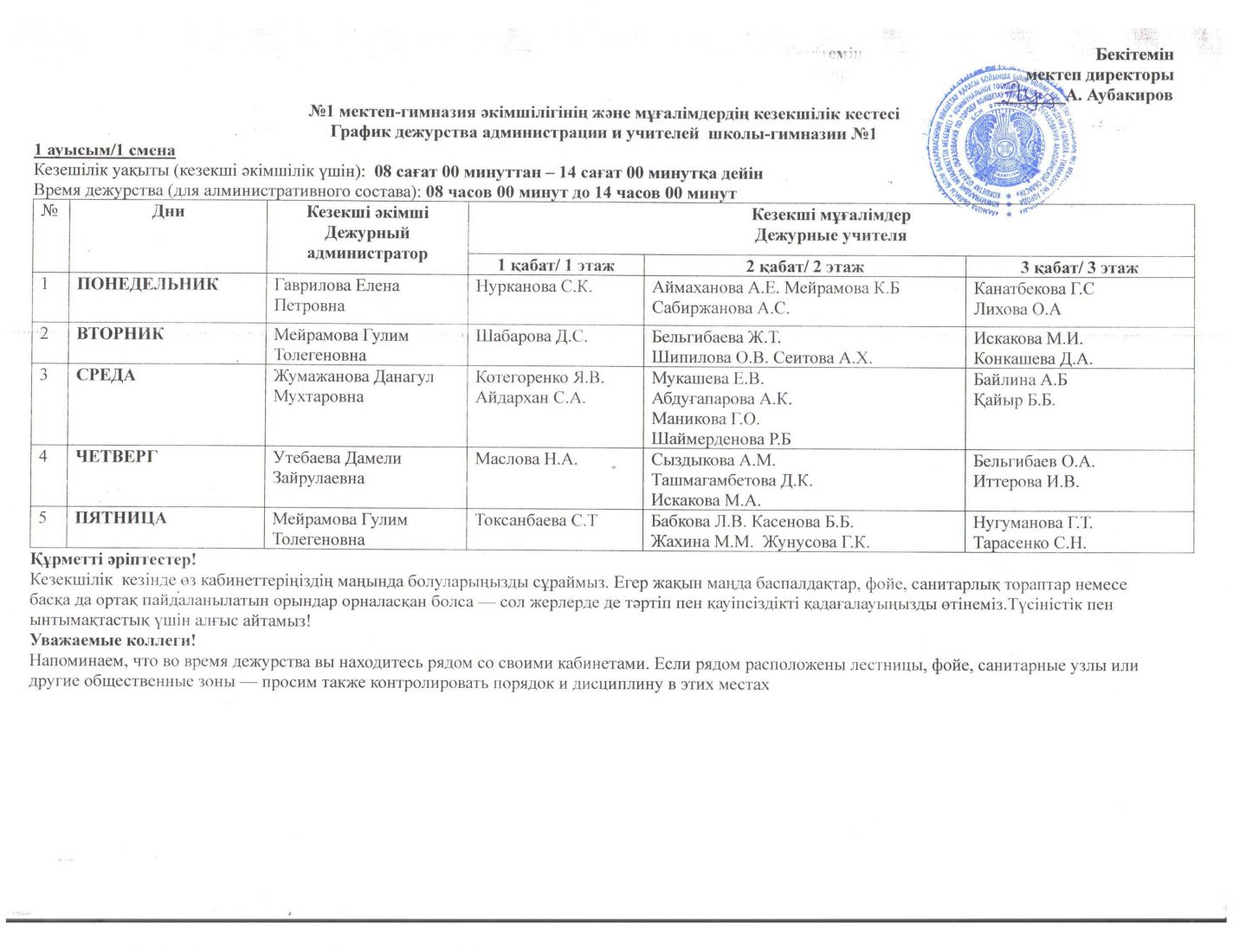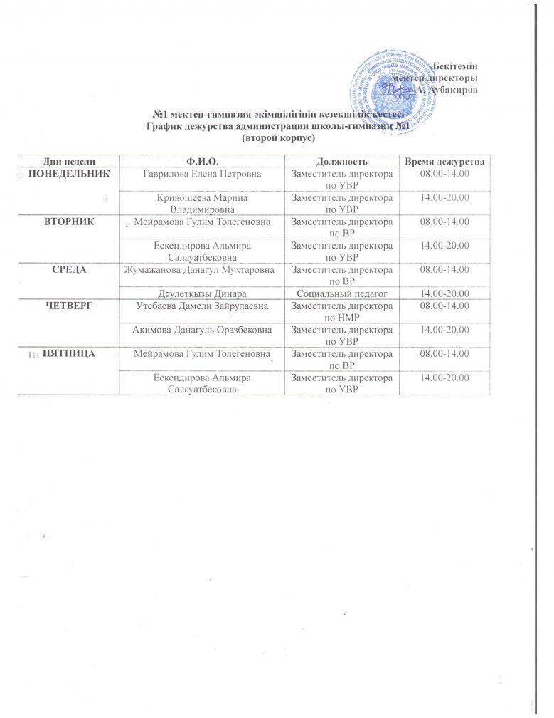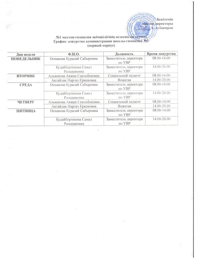 Кезекшілік кестесі