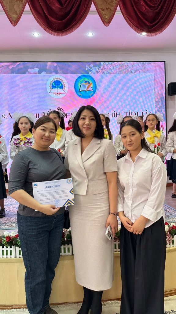 9 «Д» сынып оқушысы Кенешова Тахмина, оның анасы Бекташова Алфия және сынып жетекшісі Абдугапарова А.К. Красный Яр ауылындағы №3 көпсалалы мектеп базасында өткен «Ананың жүрегі – әлемнің тірегі» қалалық форумына қатысты.
